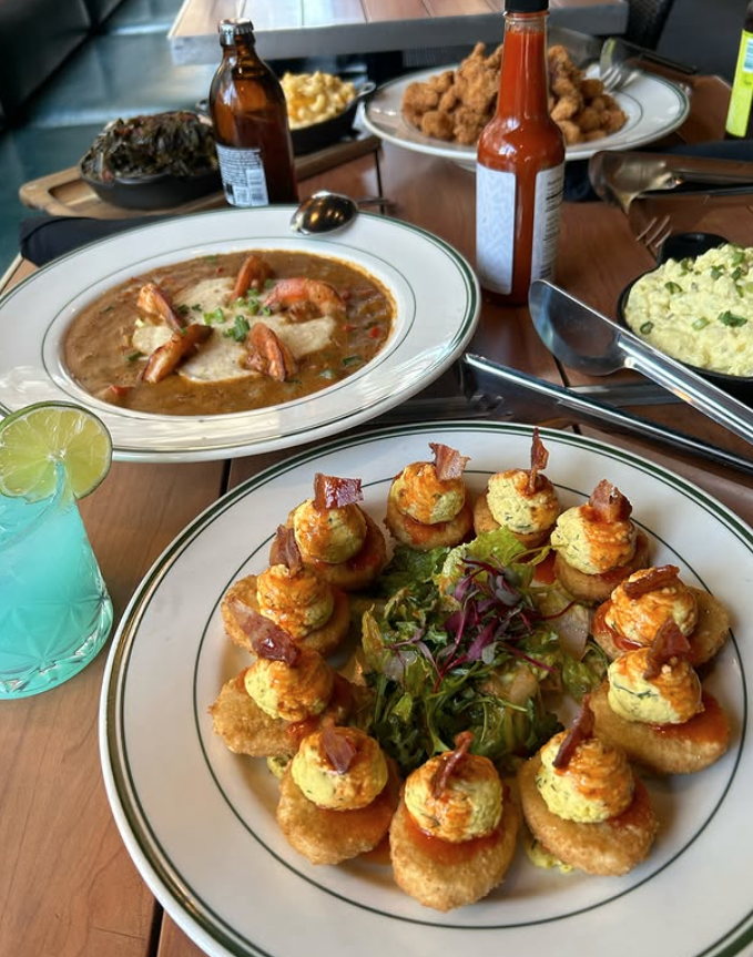 Fixins Soul Kitchen brings traditional soul food to a contemporary setting within Detroit’s historic Paradise Valley Cultural and Entertainment District. The Fixins Soul Kitchen Detroit team shares, “Founded by former NBA All-Star Kevin Johnson and his wife, Michelle, Fixins’ menu is rooted in the Southern recipes passed down through generations from Kevin’s family and friends…Centered around dishes from the Johnson family’s favorite recipes, our food is the heartbeat of the business.” On the menu, main highlights include fried chicken brined for 24 hours, smothered oxtails, fried fish, and shrimp and grits, while appetizers range from Deep Fried Deviled Eggs, Fish Nuggets, and Fried Green Tomatoes. Classic Southern sides are available, like collard greens, black eyed peas, and charred okra. Excelling in comfort food, Fixins Soul Kitchen also nods to the Classic Motown Era.